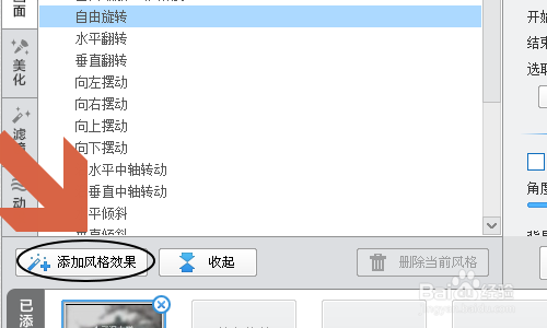 在画面气概中我们即可看到系统自带的多种扭转形式,有自由扭转、程度翻转以及垂直翻转等,我们可以选择一种适合本身需要的气概;