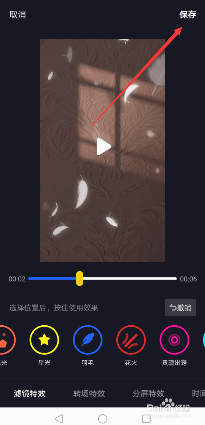 拍摄好后直接点击配上音效和特效,如下图所示。