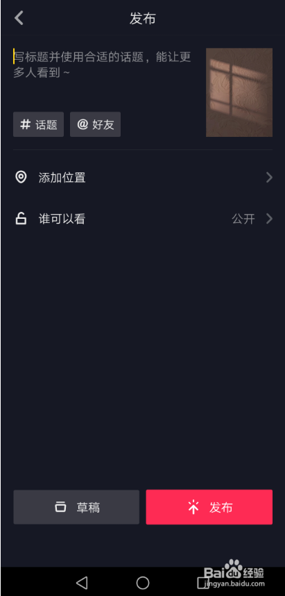 抖音窗户光影特效视频弄好后直接点击发布就可以了,如下图所示。