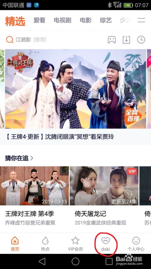 首先打开腾讯视频APP,最初显示的是首页内容,在底下一栏可以看到“doki”,点击跳转到doki页面,如图中红色标识表记标帜;