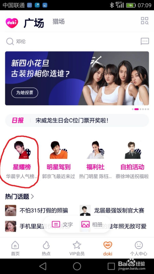 跳转到doki界面后,可以看到有各类互动内容,若是我们是为偶像打榜的话,选择点击“星耀榜”,如图中红色标识表记标帜;