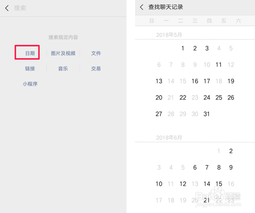 也可以按分类来查找, 若是还记得哪个月哪一天说的聊天内容也可以点击日期查找