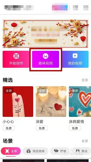 打开小影记后找到顶部位置的【趣味视频】并点击。