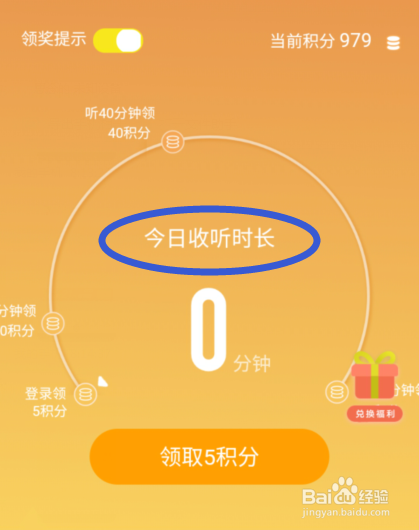 积分的几多与你收听的时长有关,收听时候越长积分越多。