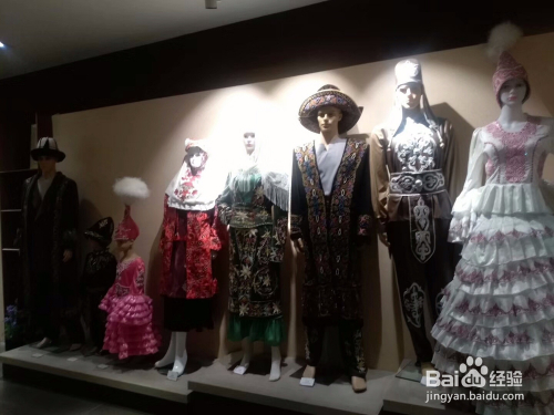 下图是表现新疆人的服装服饰,拍摄时操纵室内的灯光,尽可能的选用多个蜡像服饰元素,这样让更多的新疆服饰揭示在所拍画面上。
