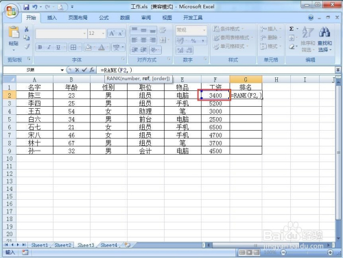 在RANK函数的括号,输入要排序的单位格,好比F2,记住要加上逗号。
