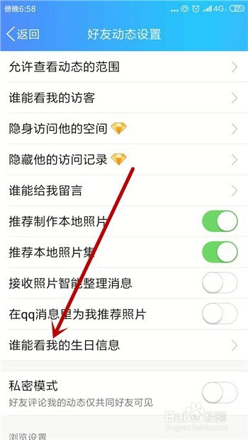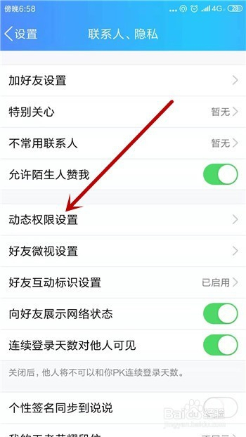 然后动态权限里有一个就是【谁能看我的生日信息】,点击这个设置。