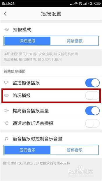然后可看到【路况播报】,点击后方的选择开关。