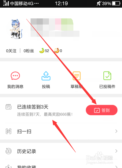 签到当作功,就会获得响应的喷鼻蕉,一般的3根,活动时代翻倍