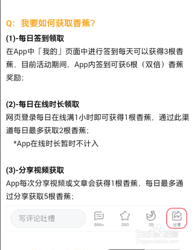 分享当作功就会获得喷鼻蕉,分享一次获得一根,一天最多得五根