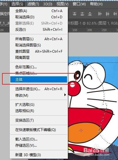 简单的操作为:“选择”--"本家儿体"。PS会主动为我们扣取人像,然后CTRL+C,复制。