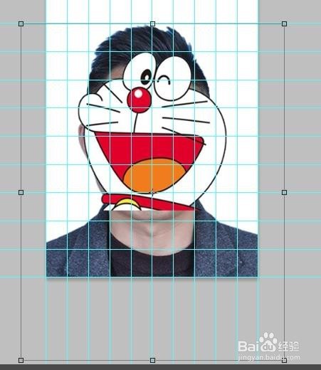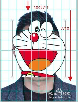 6、移动并等比例缩放我们的人像,对照参考线实现比例要求。