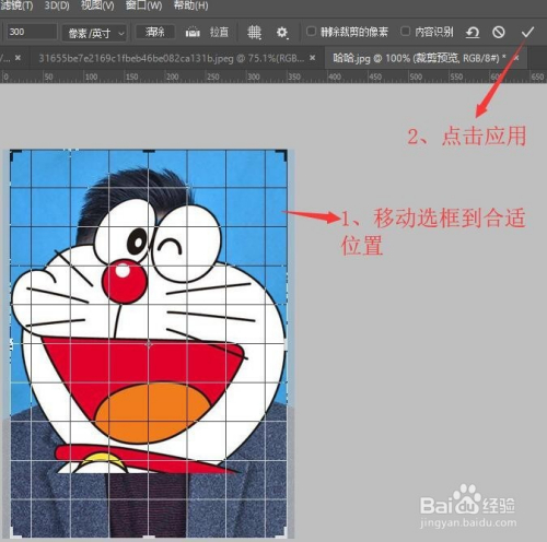 2、移动图片并对齐裁剪东西选框到合适位置,然后点击应用即可。