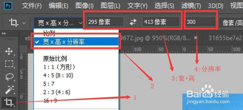 例:要求上传:25mm*35mm而且像素为:295px*413px的照片。