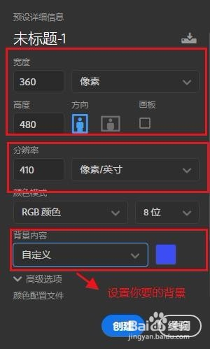 新建一个工作窗口并设置好尺寸、分辩率以及布景色。