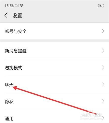 在[我]的页面中找到[设置]选项点开,在页面中找到 [聊天]选项,点击进入