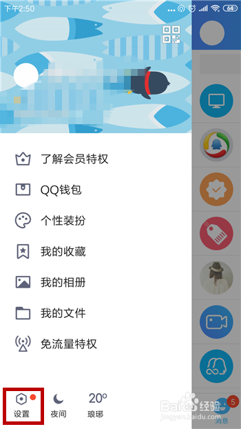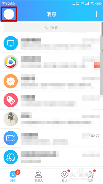 接下来在QQ的首页里找到并点击左上角的QQ头像。