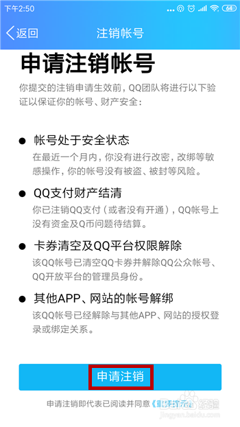 这样在账号、设备平安设置的下方就能看到【刊出账号】的功能,点击该选项。