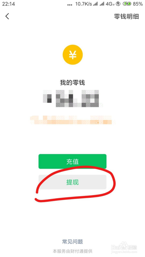 我们在钱包界面中看到零钱,也就是我们可以掏出来的钱。点进去即可。