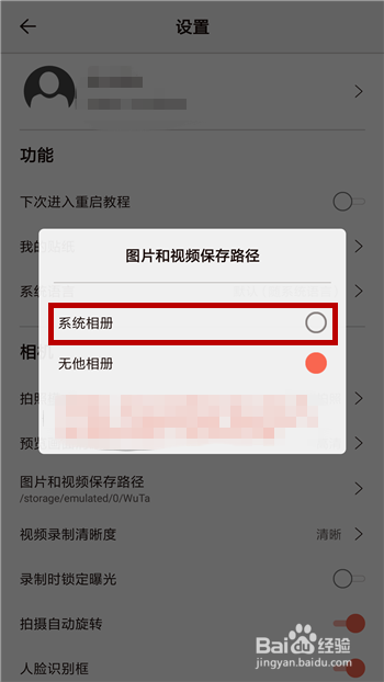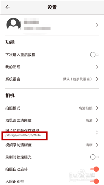 选择好后返回到设置里面,这时辰可看到路径点窜为【Camera】,也就是我们的手机相册。