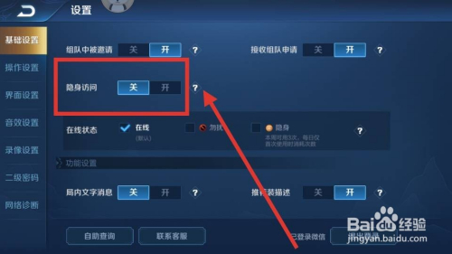 第四步,进入根本设置界面今后,我门找到【隐身拜候】,把开关点击为关,具体如下图