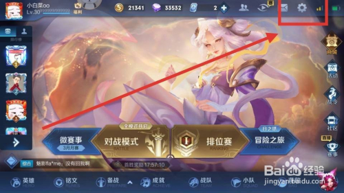 第二步,登录进入王者荣耀游戏今后,我们点击右上角的【设置按钮】,具体如下图