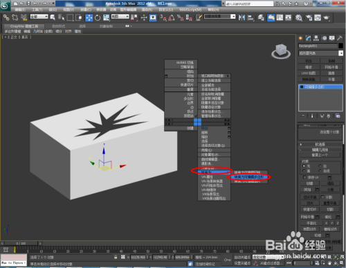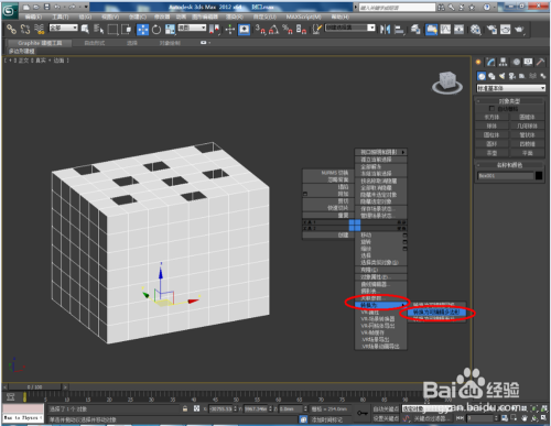打开3Dmax2012软件,我们先对法则的模子进行封口。打开一个概况出缺损的法则长方体模子。选中模子,点击鼠标右键-【转换为】-【转换为可编纂多边形】,将模子转换为可编纂多边形;