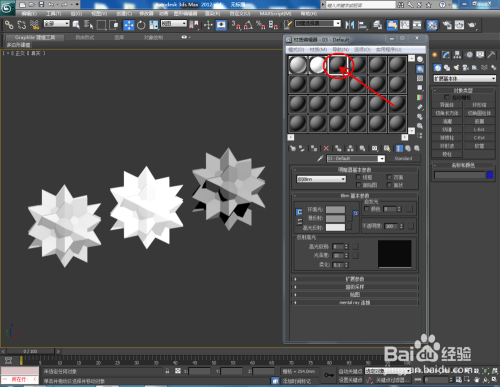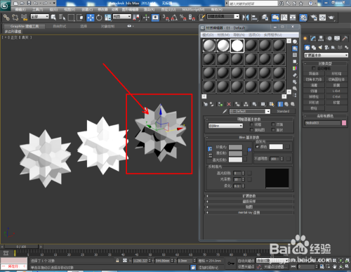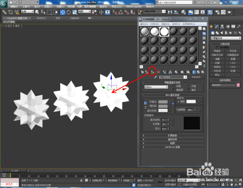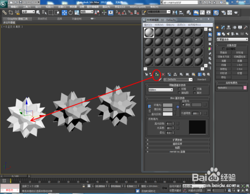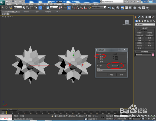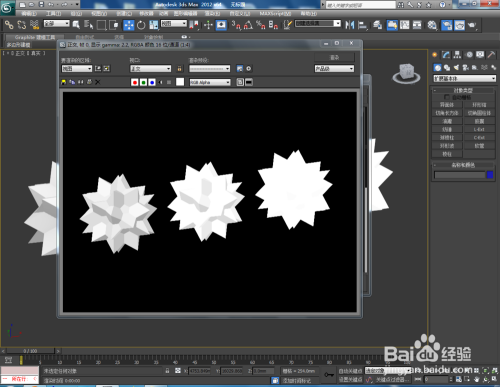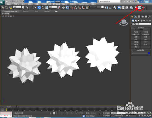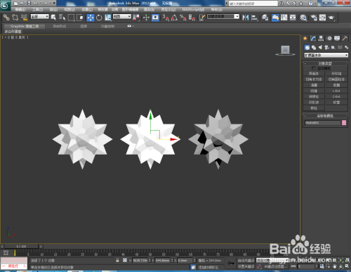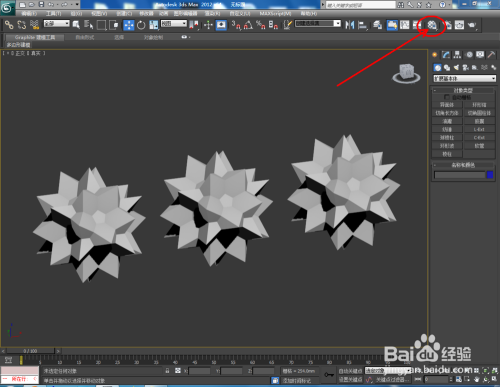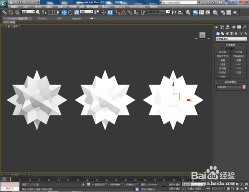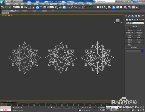 打开3Dmax2012软件,点击【建立】-【几何体】-【扩展根基体】-【星形1】,在作图区域绘制一个星形模子。按住键盘【shift】键,拉动复制出别的两个星形模子;