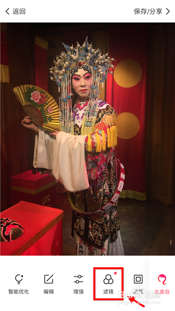 载入后在图片下方菜单栏中找到“滤镜”点击进入。