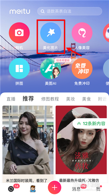 打开手机美图秀秀软件,然后选择“美化图片”,载入要处置的那张图。