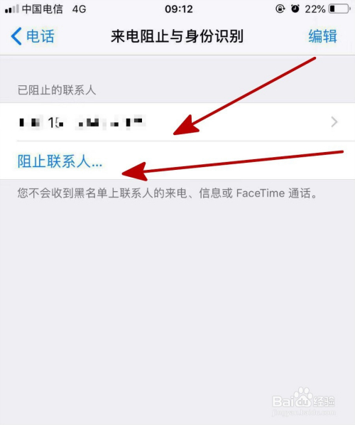 在打开编纂页面中,选择号码前面的红色“-”,点击“打消阻止”即可。如下图