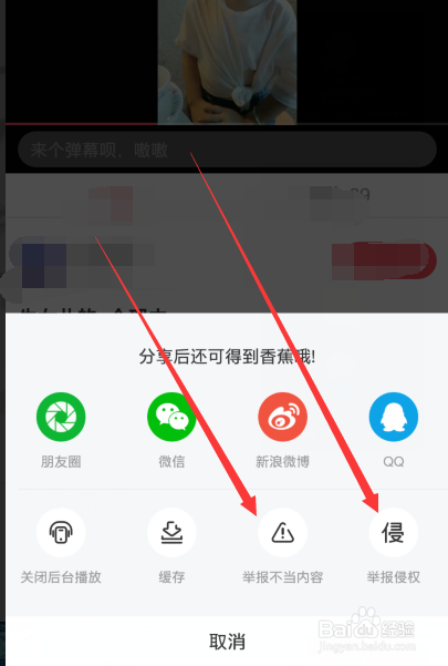 鄙人面弹出的选项选择【举报内容不妥】或者【举报侵权】