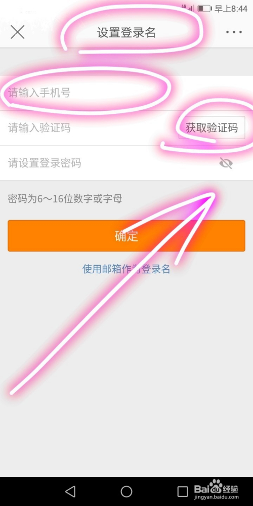 设置登录密码页面呈现在手机上,我们按照要求先填写手机号,随后点击获取验证码;