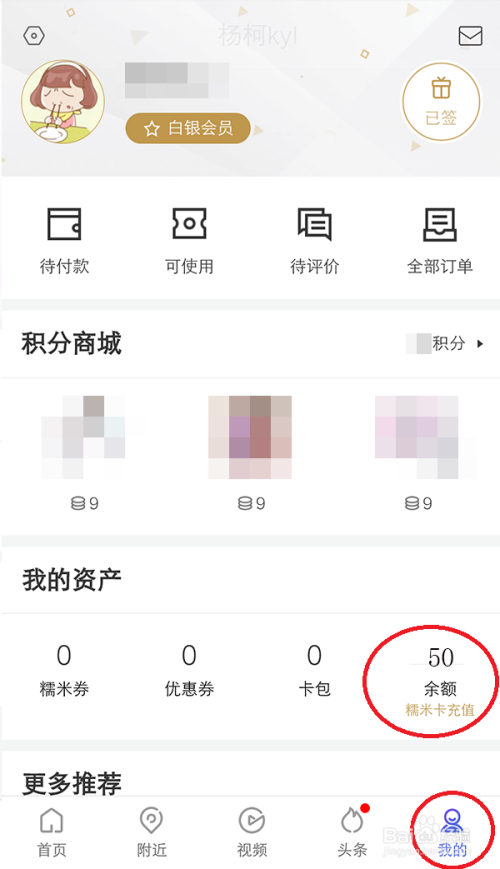 手机打开百度糯米,登入账号,充值糯米卡当作功后,选择【我的】可以看到余额。