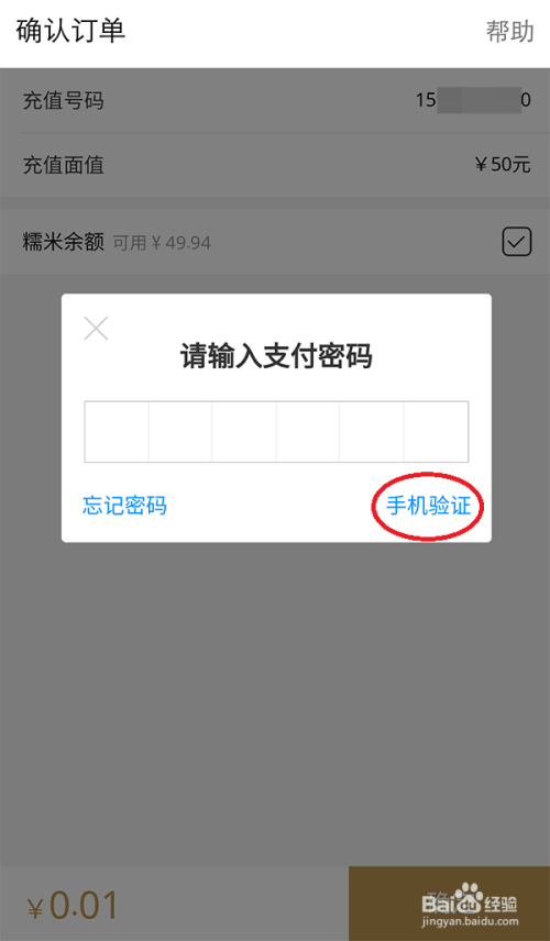 输入支付密码,若是不记得密码,或者没有设置过密码,可以点击【手机验证】经由过程手机验证码从头设置支付密码。