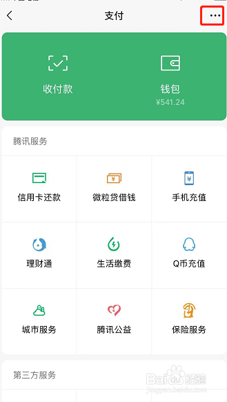 在支付本家儿页右上角,找到如图所示【...】图标,点击该图标,进入支付办理本家儿页!