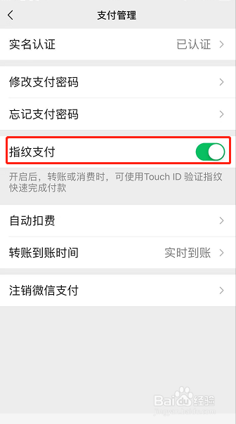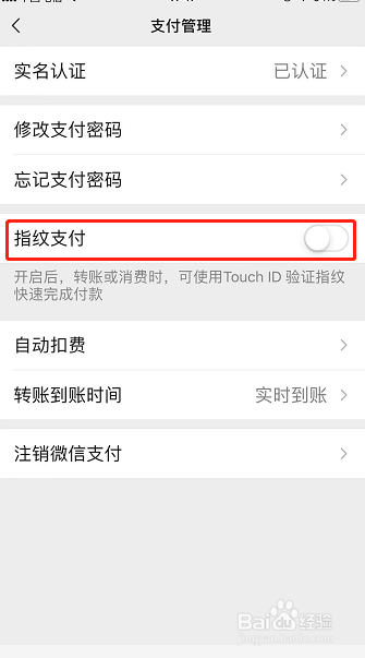 经由过程身份验证后,指纹支付功能便可当作功开启!