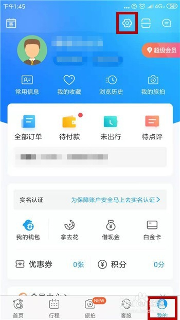 或者反馈问题的话需要点击【我的】,然后点击右上角的【设置】。