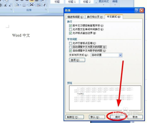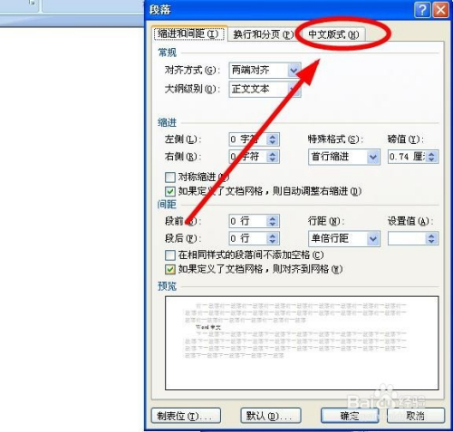 在“段落”对话框单击“中文版式”选项卡
