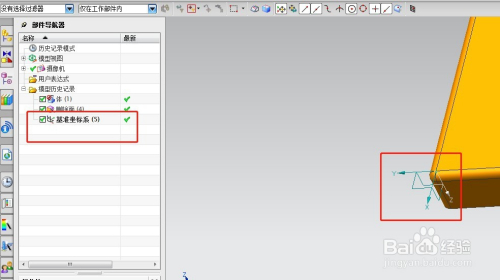 确定后,导航器中就会有基准坐标系,图纸也会有