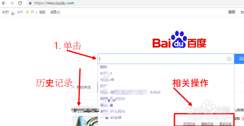 在搜刮栏点击一下鼠标,这时就会弹出以前的搜刮记实以及记实相关操作。