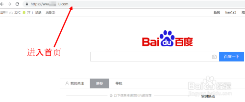 打开IE浏览器,在地址栏输入百度的网址,回车进入百度首页。