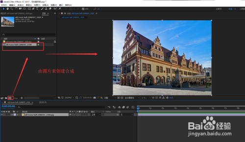 选中导入的图片素材,按住鼠标左键不松将其拖到新建合当作按钮上来主动按照素材生当作一个AE合当作。