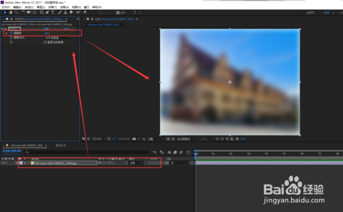 将时候轴移到最左侧位置,在结果控件中找到快速恍惚结果,在恍惚度上打入一个关头帧,并设置数值为100,这时辰图片是完全恍惚的。