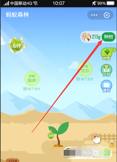 此刻点击蚂蚁丛林右上角的种树