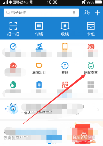 然后点击支付宝首页上的蚂蚁丛林