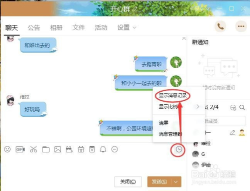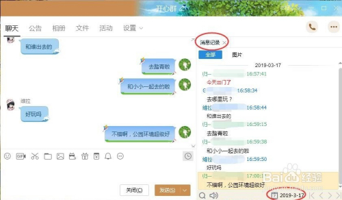 会在右边呈现聊天记实,点击时候,就可以选择当天的聊天记实,如图所示。