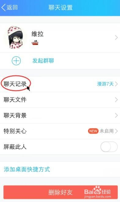 在聊天设置页面,点击【聊天记实】如图所示。