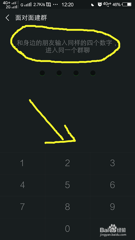 之后,我们会进入选择群聊或者建群的界面,我们第一个法子是面临面建群,我们点击面临面建群。然后输入同样的四个数字,即可配合建群当作功。