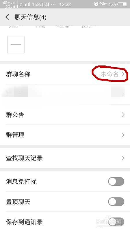 可是我们需要给我们的群聊起个名字啊,我们点击右上角的菜单,进入后找到群聊名称点击群聊名称,进入点窜群聊名称界面。